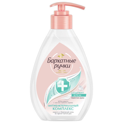 Мыло-крем жидкое 240 мл, БАРХАТНЫЕ РУЧКИ "Антибактериальный комплекс", масло чайного дерева и серебро