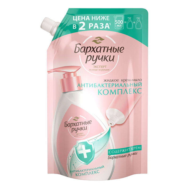 Мыло-крем жидкое Бархатные ручки "Антибактериальный комплекс", дой-пак, 500мл