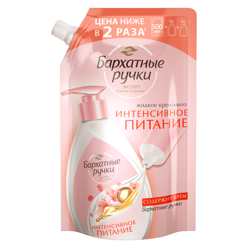 Мыло-крем жидкое Бархатные ручки "Интенсивное питание", дой-пак, 500мл