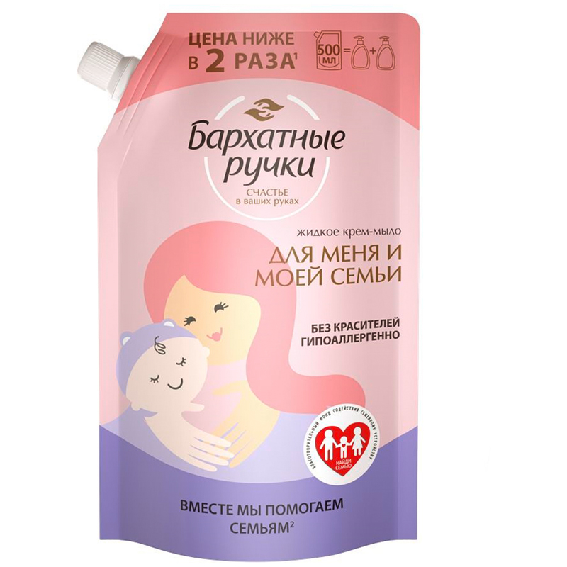 Мыло жидкое Бархатные ручки "Для меня и моей семьи", дой-пак, 500мл