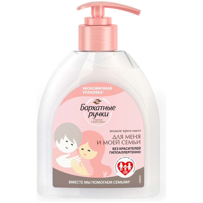 Мыло жидкое Бархатные ручки "Для меня и моей семьи", с дозатором, 510мл
