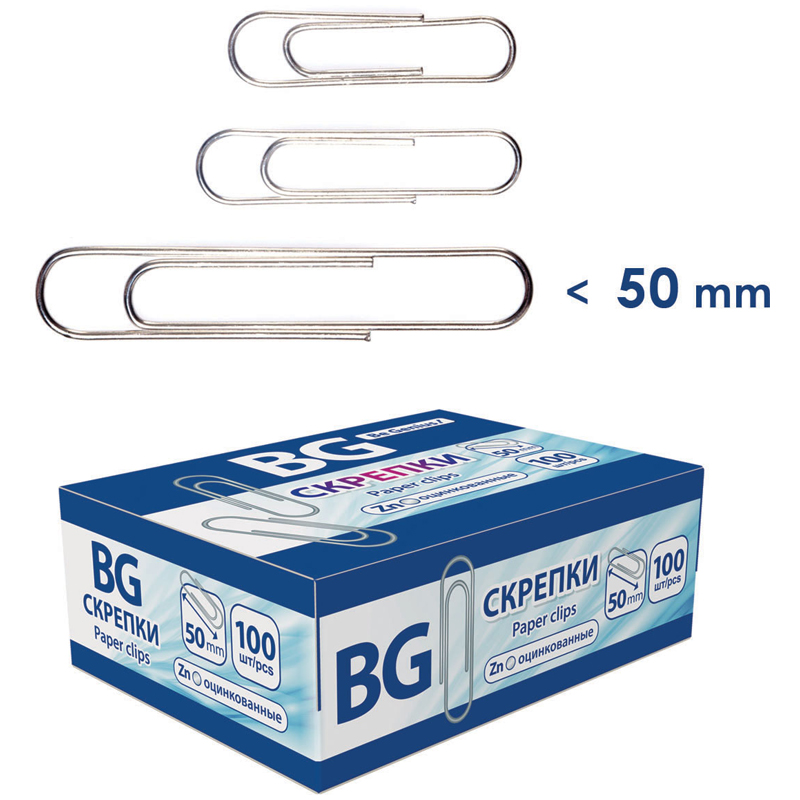Скрепки 50мм, BG, 100шт., оцинкованные, картонная упаковка