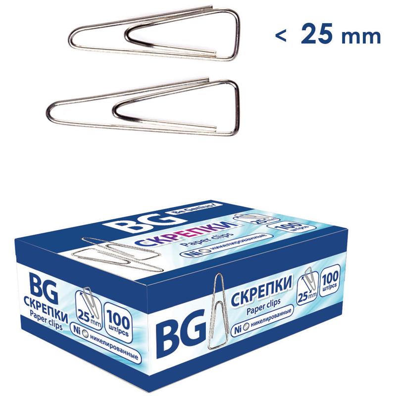 Скрепки 25мм, BG, 100шт., никелированные треугольные