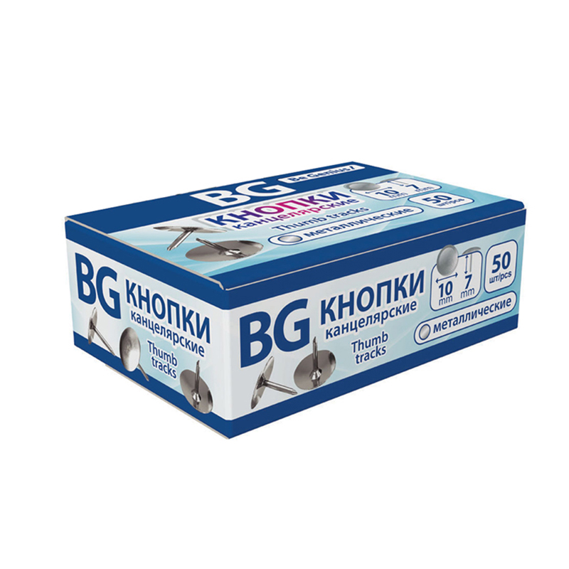 Кнопки канцелярские/гвоздики BG, никелированные, 10мм,, 50шт., карт. упак.