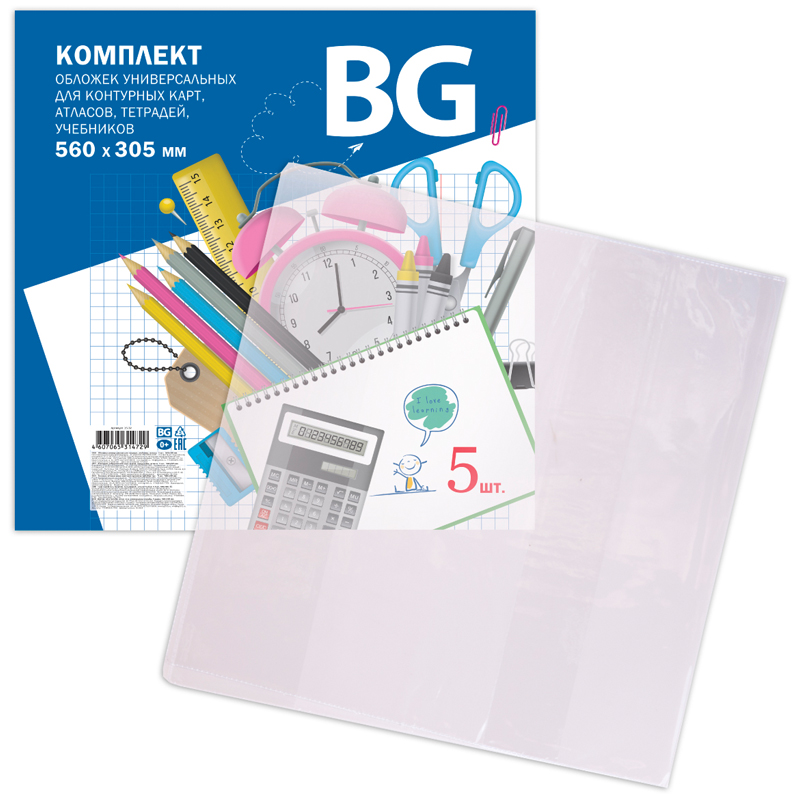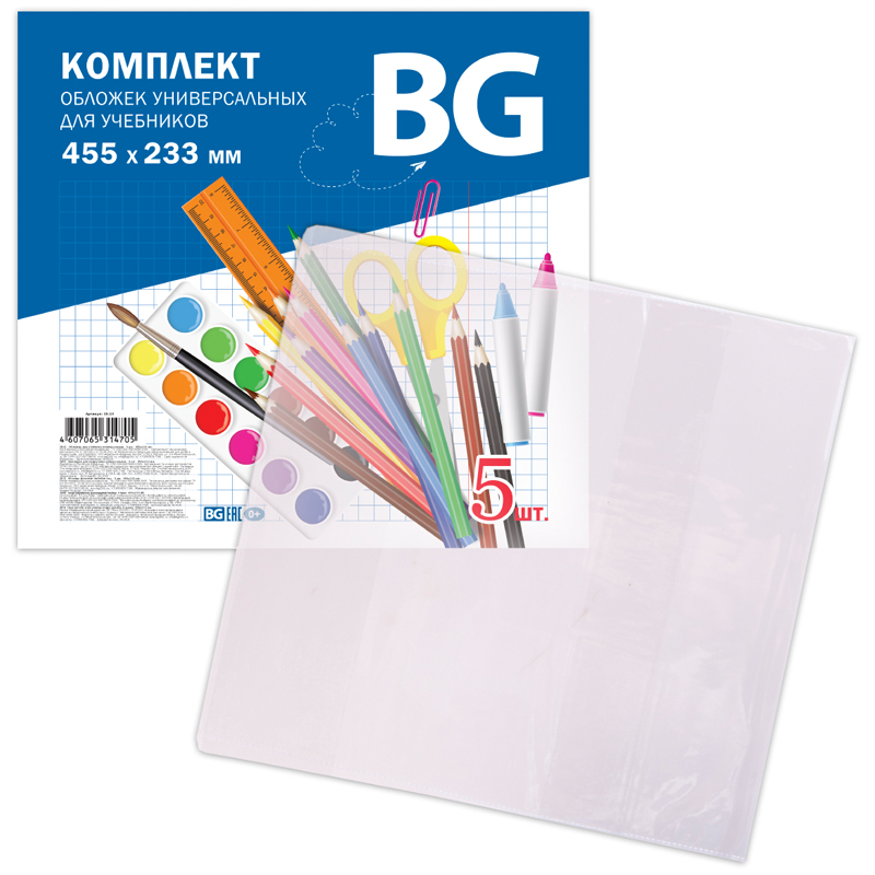 Набор обложек (5шт.) 233*450 BG, для учебников, универсальная, ПВХ
