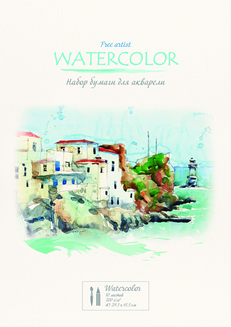 Папка для акварели 10л. А3, БиДжи "Домик у моря", блок рис.бум. 200г/м2