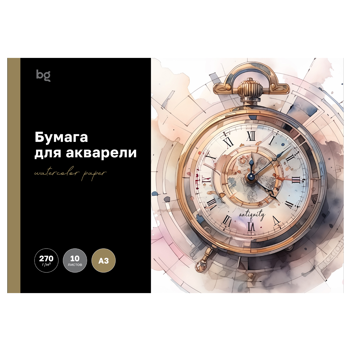 Папка для акварели 10л. А3, BG "Антикварные часы", 270г/м2