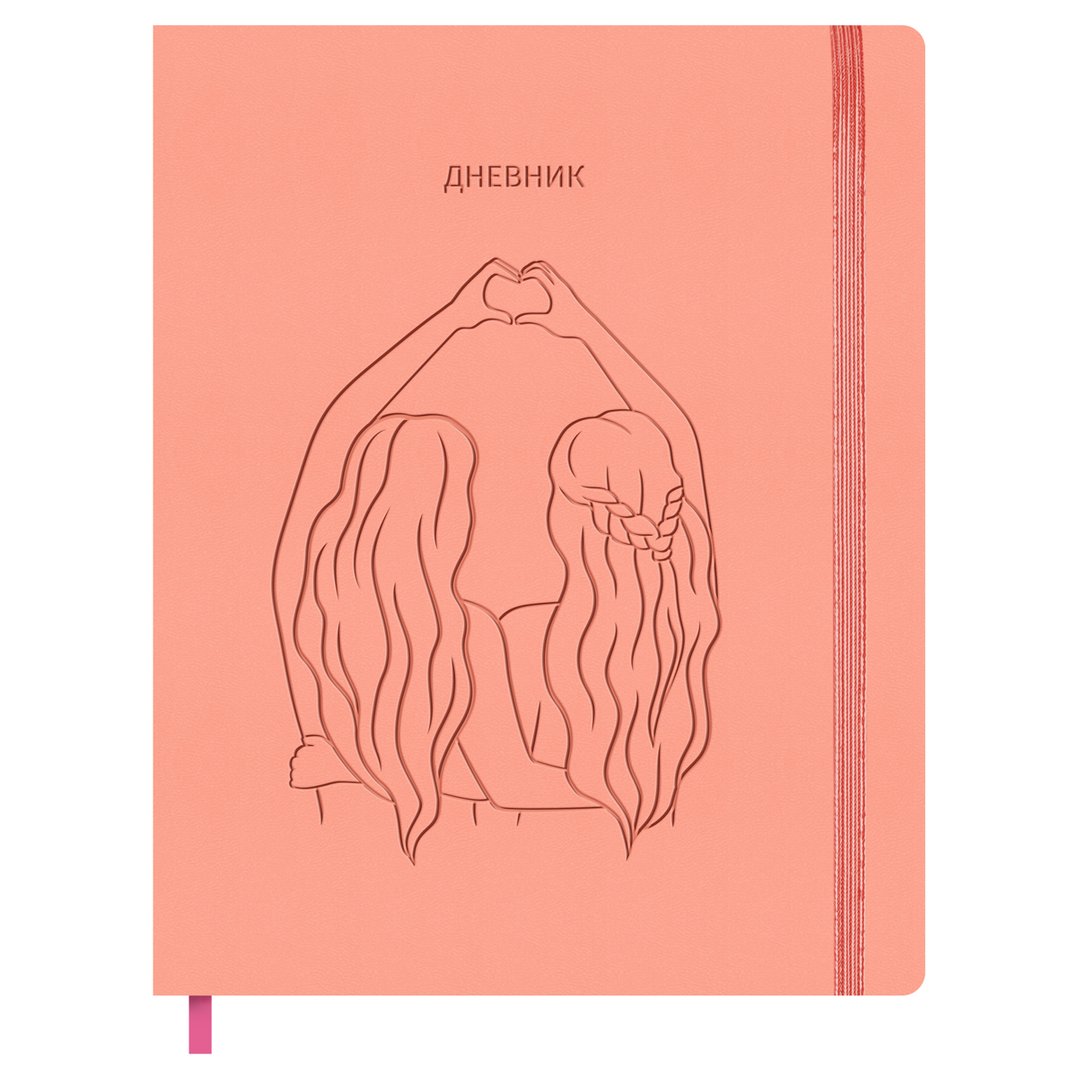 Дневник 1-11 кл. 48л. ЛАЙТ BG "Best friends", иск. кожа, блинтовое тиснение, ляссе, на резинке