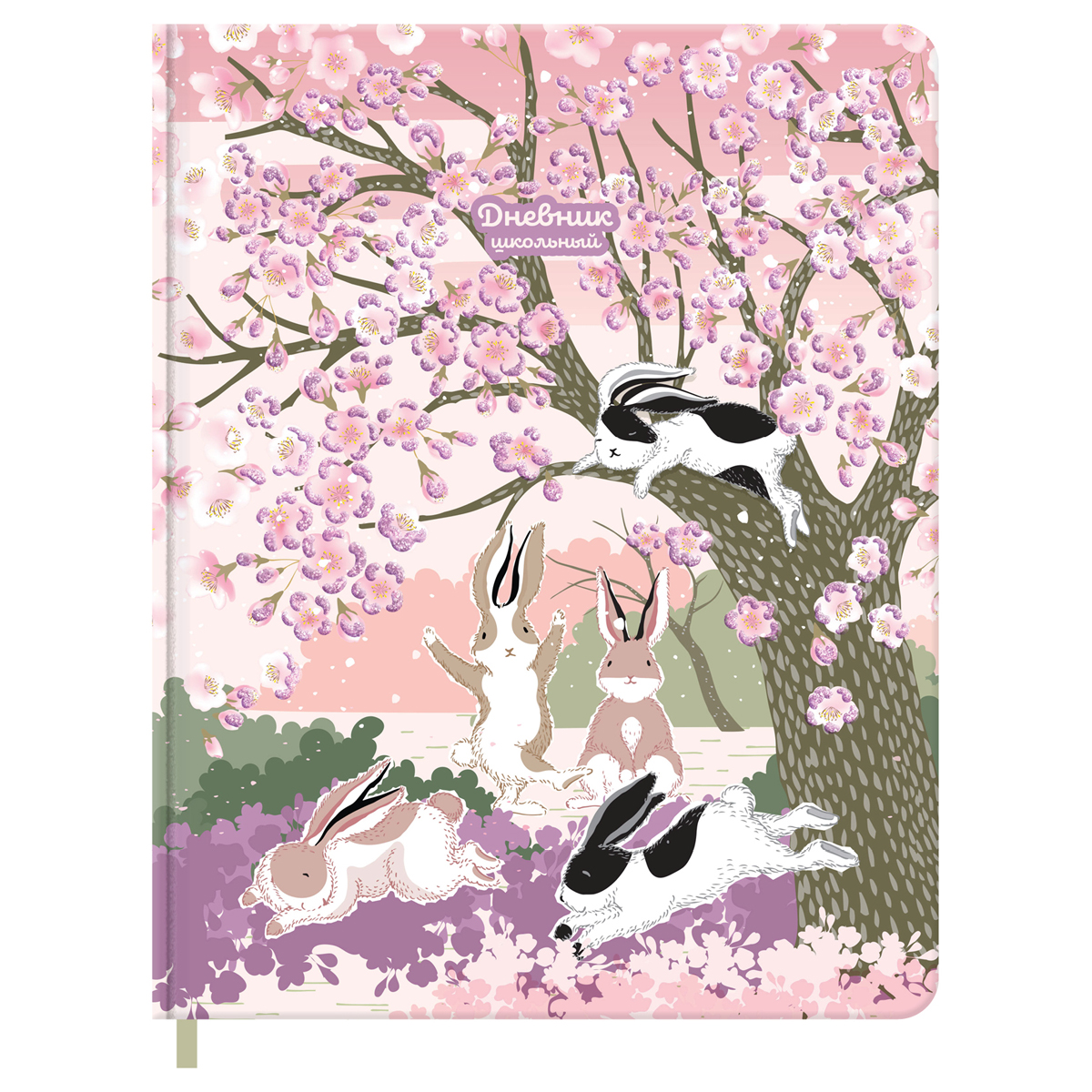 Дневник 1-11 кл. 48л. ЛАЙТ BG "Милые зайки", иск. кожа, печать, с блестками, ляссе