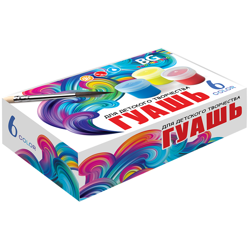 Гуашь художественная BG "Яркая палитра", 6 цветов, 10мл, картон. упаковка