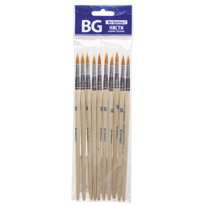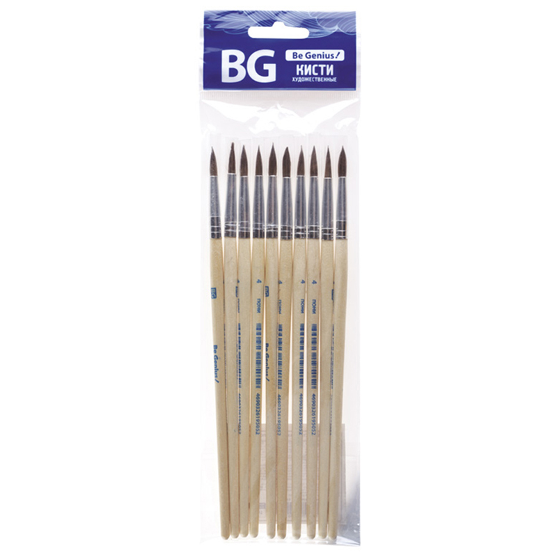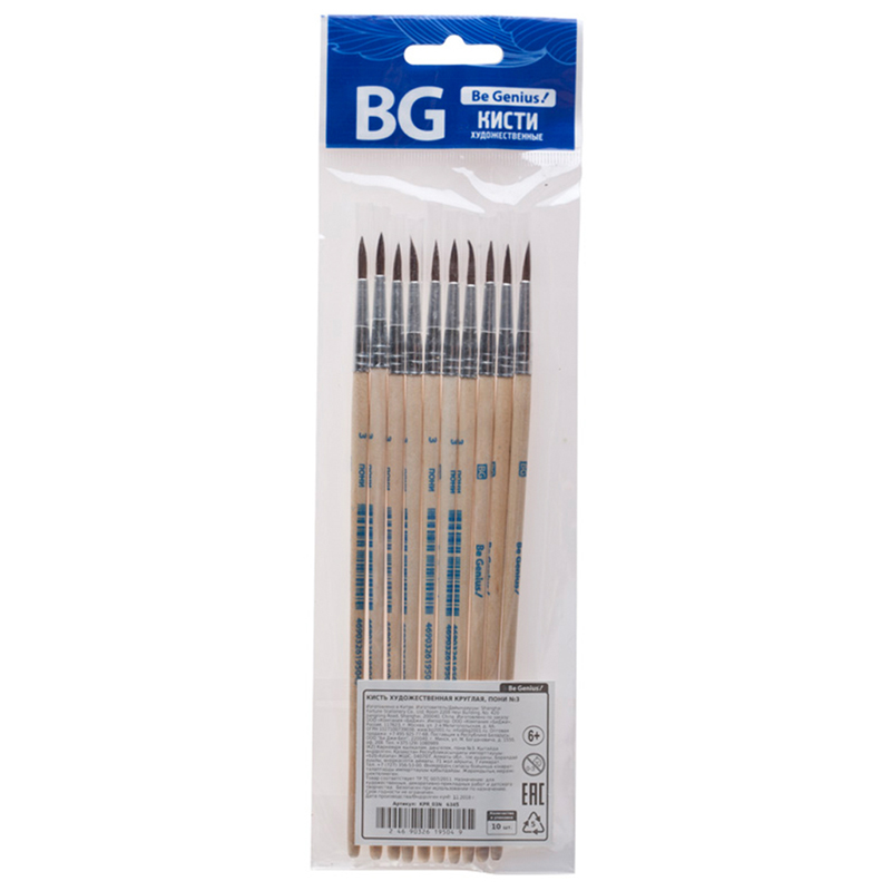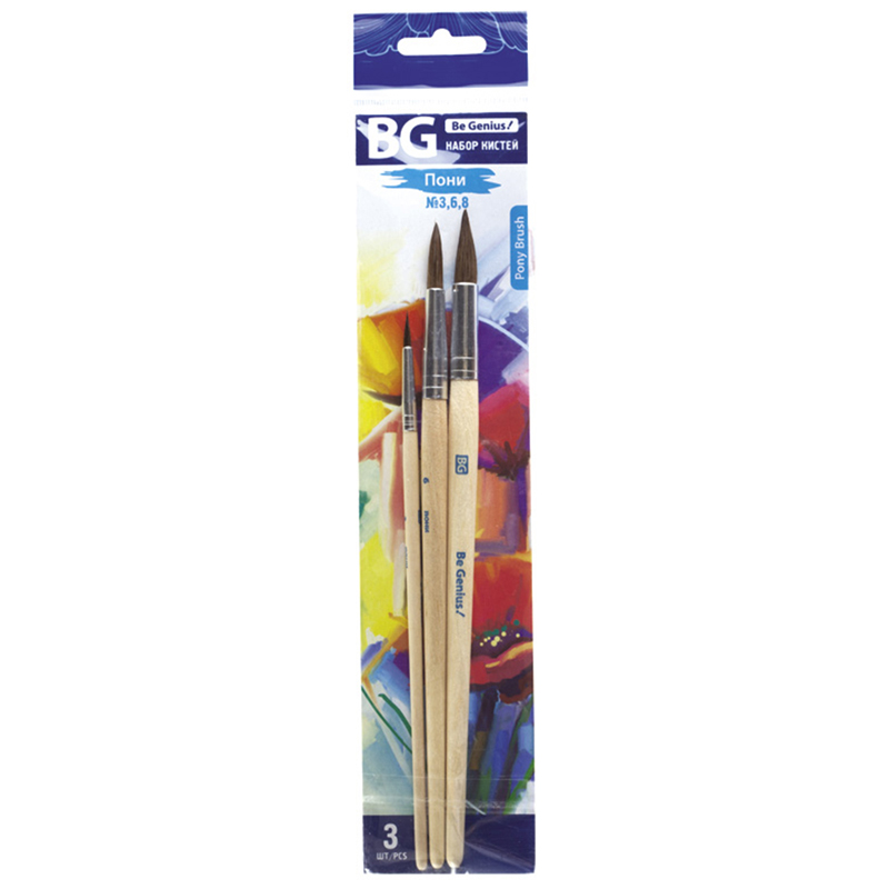 Набор кистей художественных пони BG 3шт., круглая, № 3, 6, 8, блистер