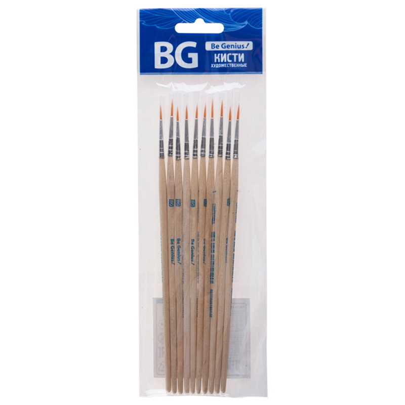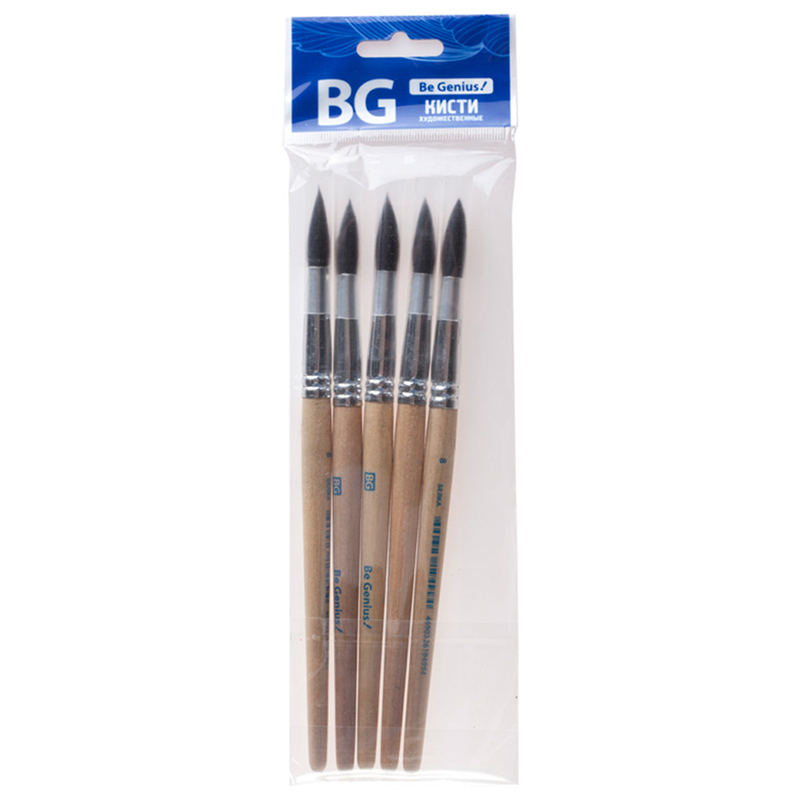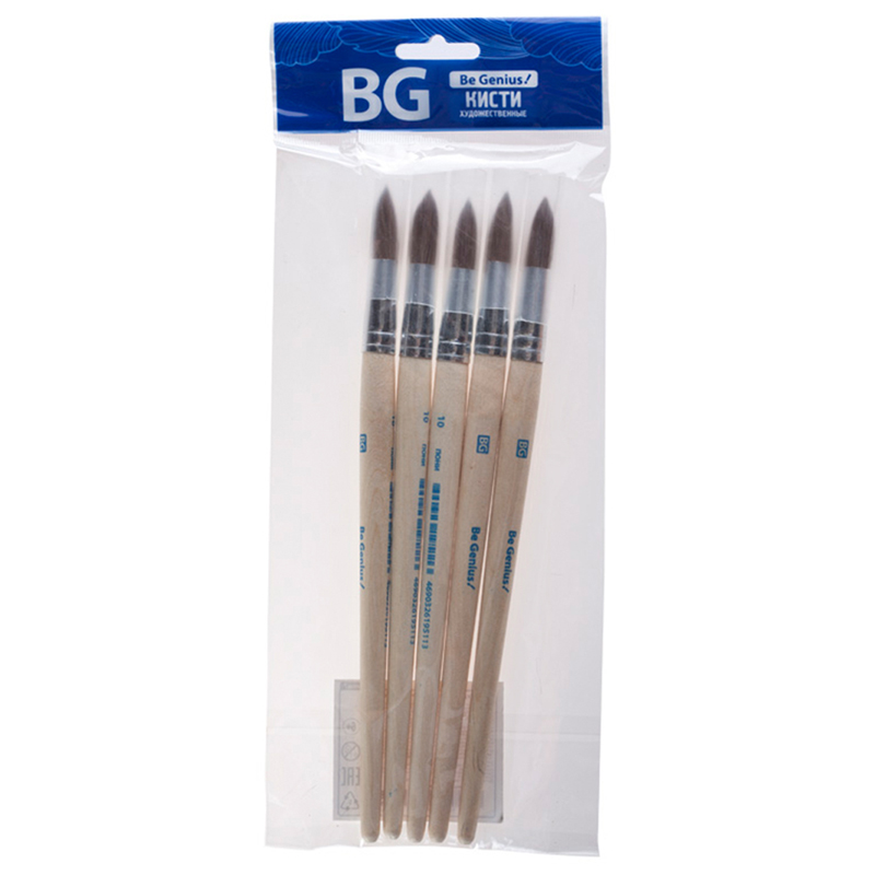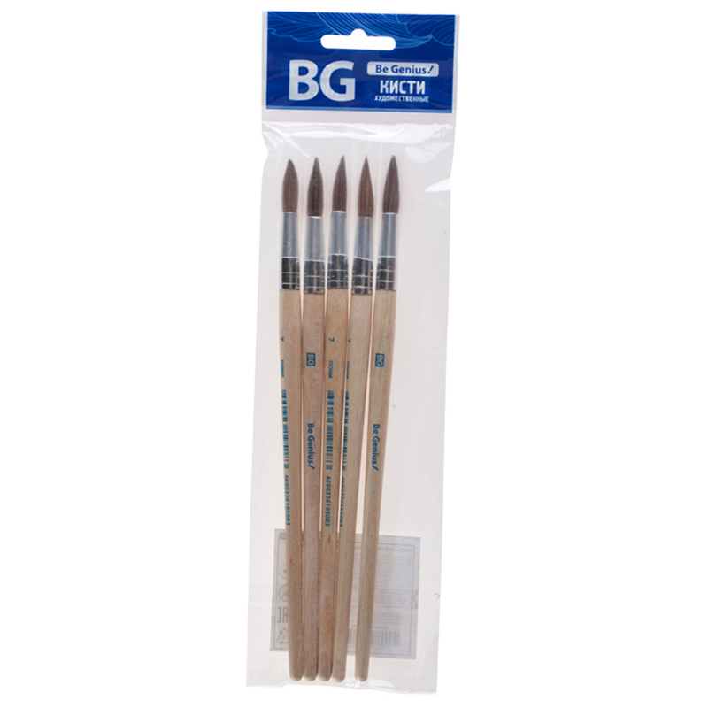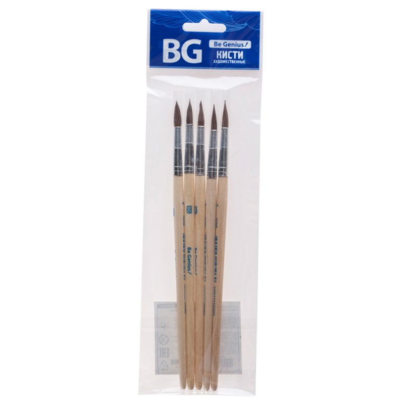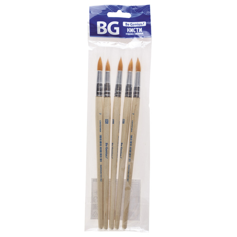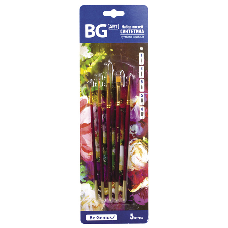 Набор кистей синтетика BG 5 шт., круглая, №1,3,5, плоская №5,8 блистер