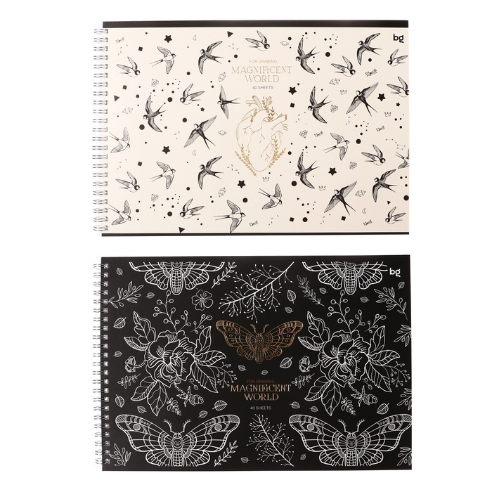 Альбом для рисования А4 40 листов, на гребне "Magnificent", обложка мелованный картон, матовая ламинация, тиснение фольгой, блок 100г/м2