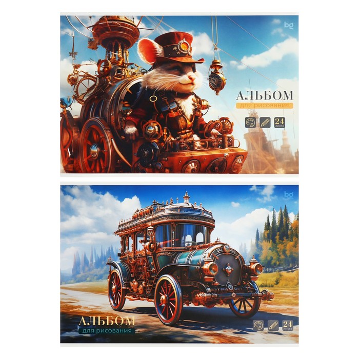 Альбом для рисования А4, 24 листа на скобе "Стимпанк", обложка мелованный картон, 100г/м2, МИКС