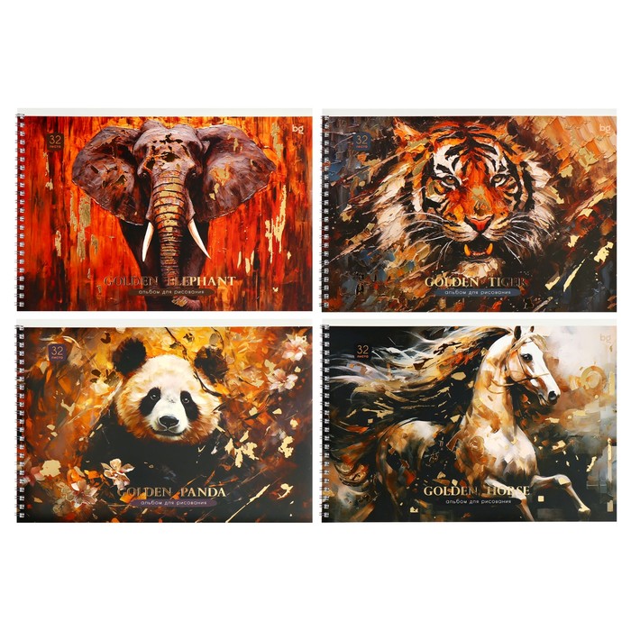 Альбом для рисования А4, 32 листа на гребне , Golden collection, обложка мелованный картон, тиснение фольгой, 100г/м2, МИКС