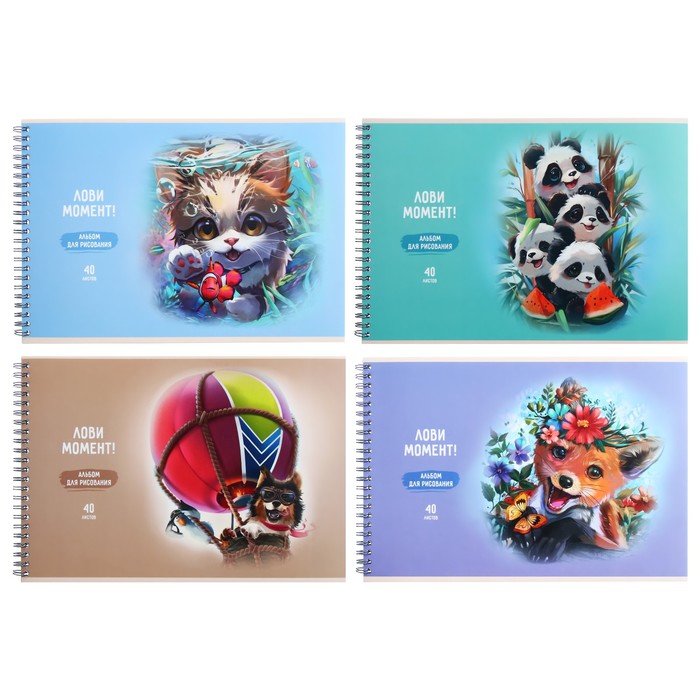 Альбом для рисования А4, 40 листов на гребне "Лови момент!", обложка картон, матовая ламинация, блок офсет 100 г/м2, МИКС