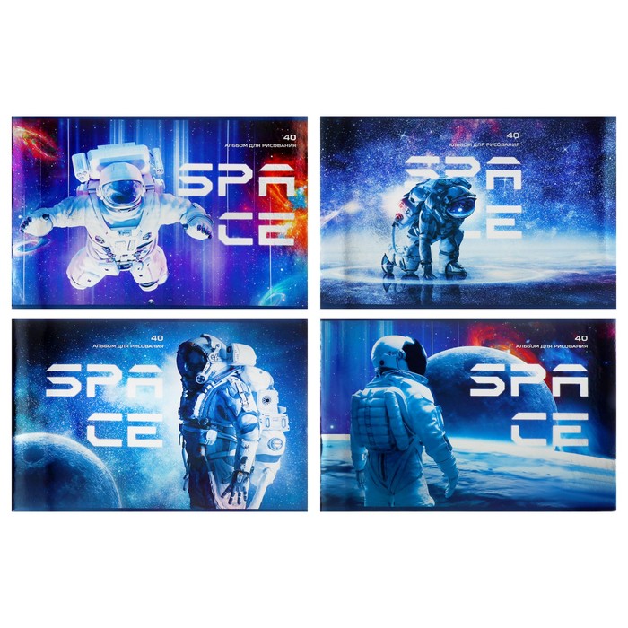 Альбом для рисования А4, 40 листов на гребне "Галактика", обложка мелованный картон, металлизация, 100г/м2, МИКС