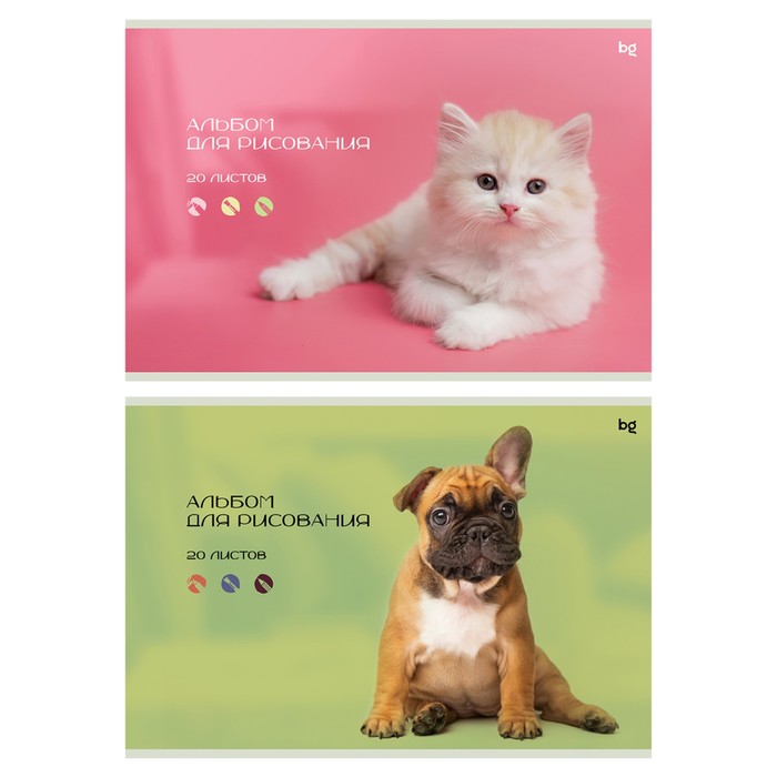 Альбом для рисования А4, 20 листов «Собачка и котик», картонная обложка, блок 100 г/м2, МИКС