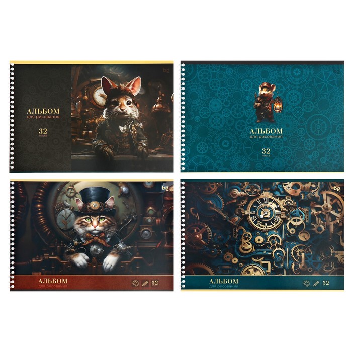 Альбом для рисования А4, 32 листа на гребне "Стимпанк", обложка мелованный картон, выборочный лак, 100г/м2, МИКС