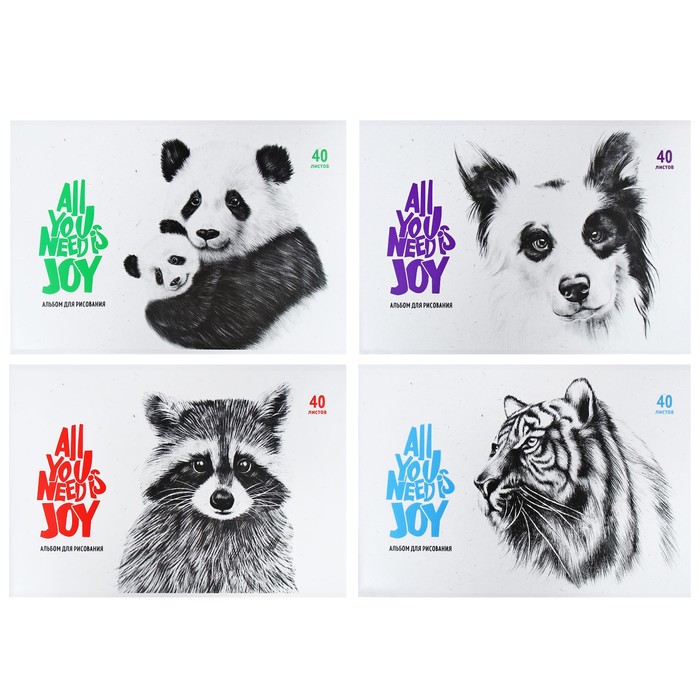 Альбом для рисования А4, 40 листов на скрепке All you need is joy, обложка картон, блок офсет 100 г/м2, МИКС
