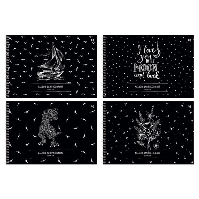 Альбом для рисования А4, 20 листов на гребне "Чёрный стиль", обложка картон, блок офсет 100 г/м2, МИКС