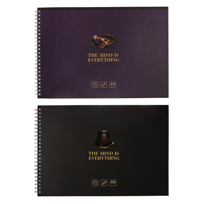 Альбом для рисования А4, 40 листов на гребне "Стимпанк", обложка мелованный картон, матовая ламинация, выборочный лак, блок 100 г/м2, МИКС