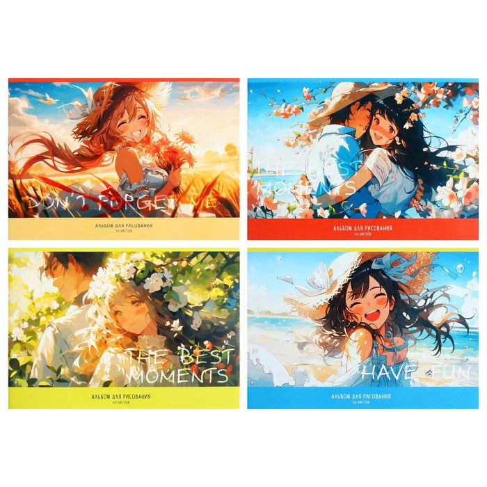 Альбом для рисования А4, 40 листов на скрепке "Аниме", обложка картон, блок офсет 100 г/м2, МИКС