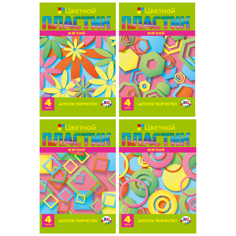 Цветной мягкий пластик BG "EVA. Geometric shapes" А4, 4л., 4цв., в папке