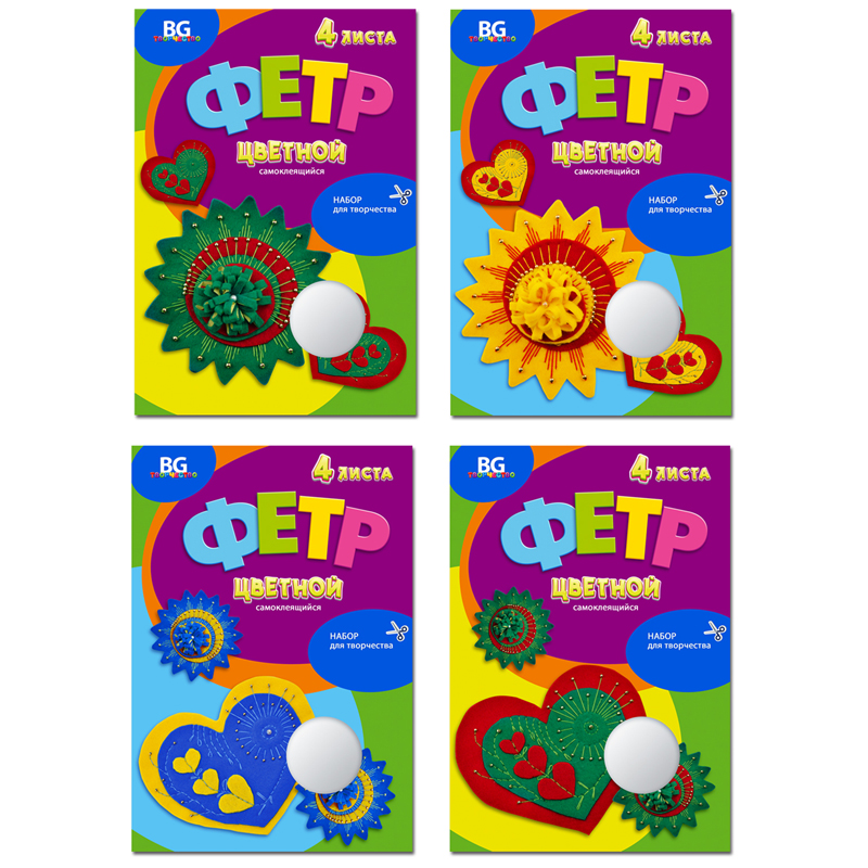 Фетр цветной самоклеящийся А4, BG "Подарок для мамы", 4л., 4цв., папка