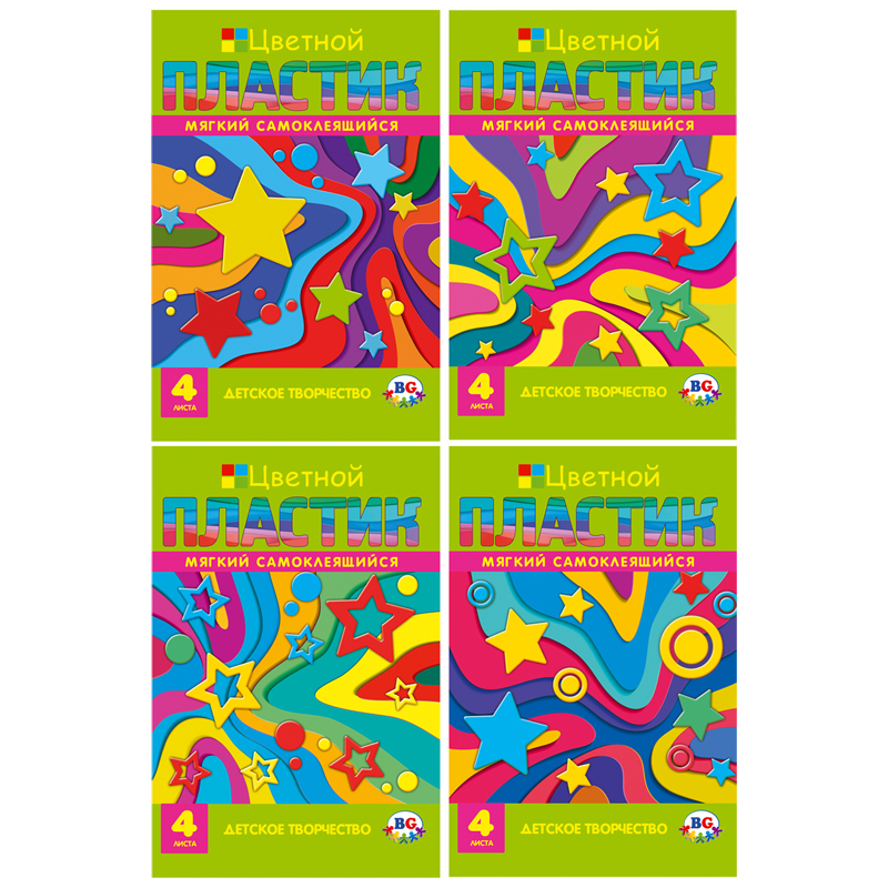 Цветной мягкий самоклеящийся пластик BG "EVA. Stars" А4, 4л., 4цв., в папке