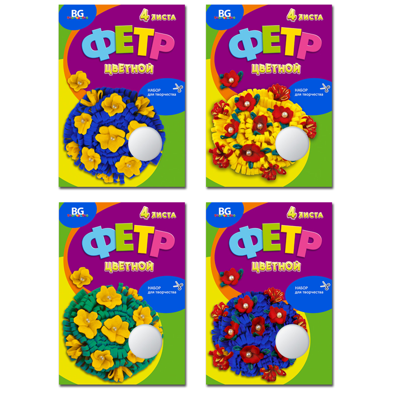 Фетр цветной BG А4 "Волшебный букет", 4л., 4цв., папка