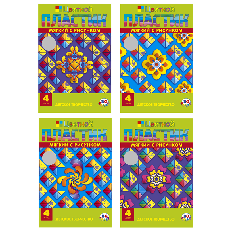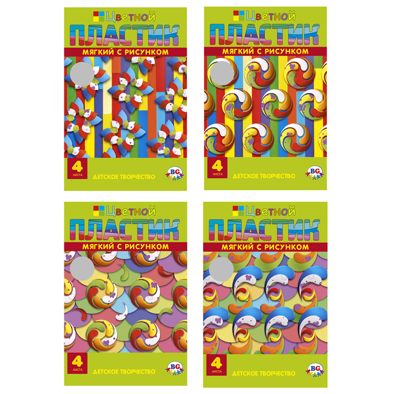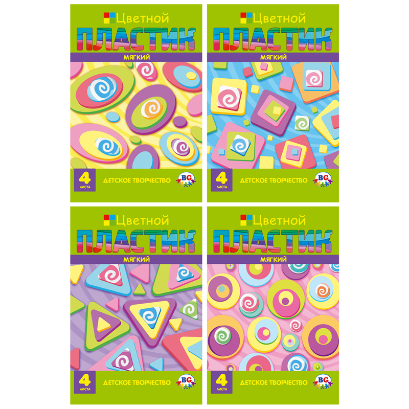 Цветной мягкий пластик BG "EVA. Rotation" А4, 4л., 4цв., в папке