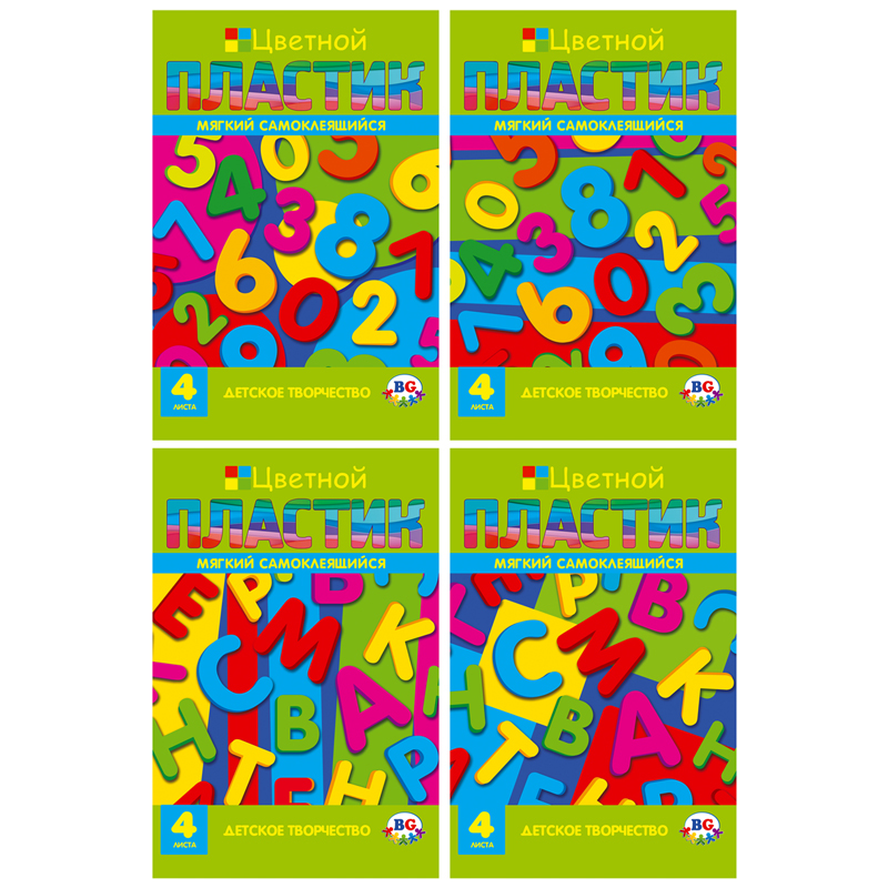Цветной мягкий самоклеящийся пластик BG "EVA. Цифры и буквы" А4, 4л., 4цв., в папке