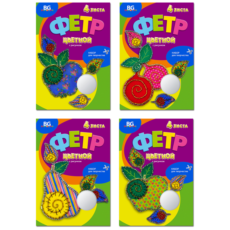Фетр с рисунком BG А4 "Чудо-Фрукты", 4л., 4цв., папка