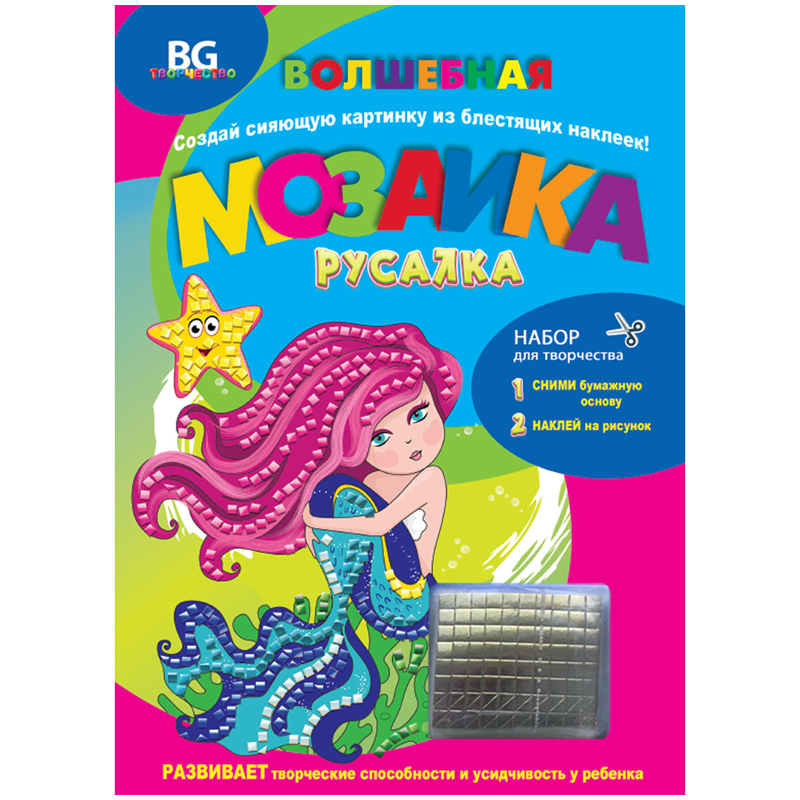 Набор для творчества BG "Волшебная мозаика - Русалка", А4, блестящие наклейки, папка с европодвесом