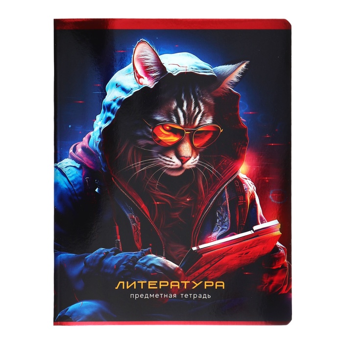 Тетрадь предметная "Мир будущего", 48 листов в линейку,"Литература", мелованный картон, металлизированная краска, блок офсет