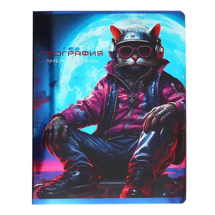 Тетрадь предметная "Неоновые истории", 48 листов в клетку, "География", обложка мелованный картон, ВД-лак, неон, блок офсет