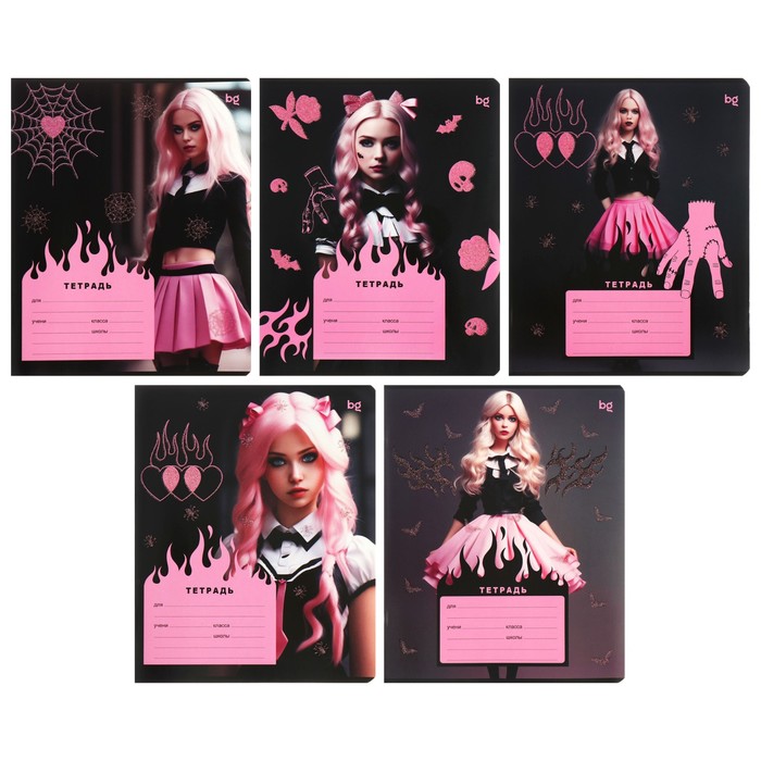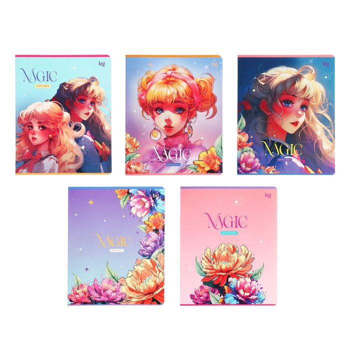 Тетрадь 48 листов в клетку "Девочки", обложка мелованный картон, ВД-лак, белизна 90, блок 60г/м2, МИКС