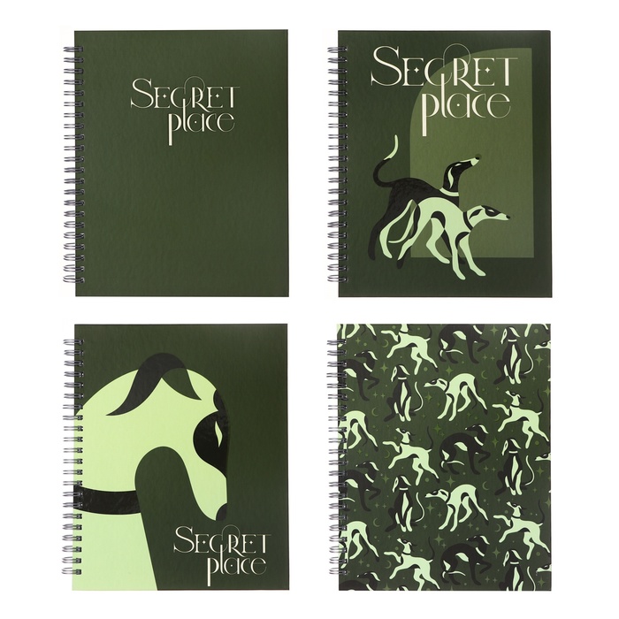 Тетрадь 80 листов в клетку на гребене Secret Place, обложка мелованный картон, матовая ламинация, выборочный лак, фольга, МИКС