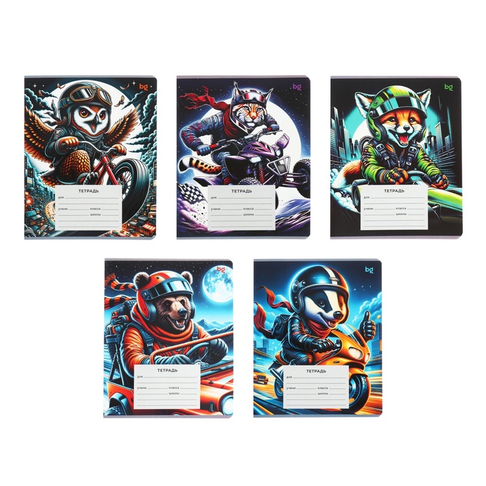 Тетрадь18 листов, в линейку, на скобе "Гонщики", обложка мелованный картон, выборочный лак, МИКС