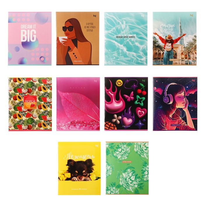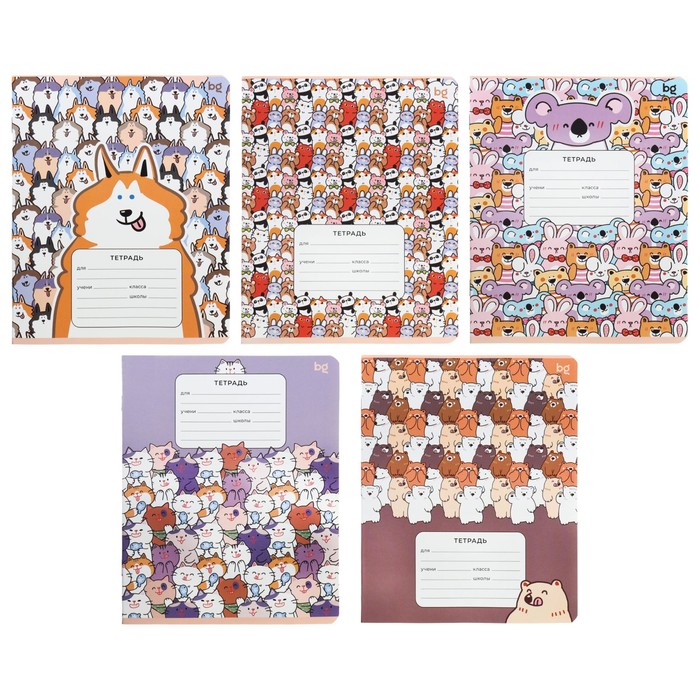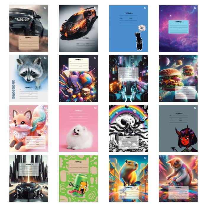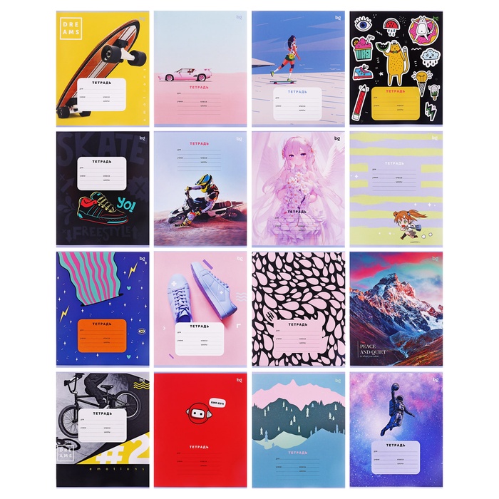 Тетрадь 12 листов в клетку BG "Super Mix", обложка мелованный картон, ВД-лак, блок 60 г/м2, белизна 90%, МИКС