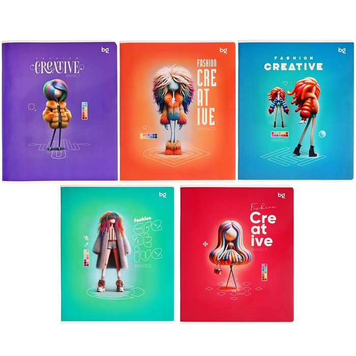 Тетрадь 60 листов, в клетку, на скобе, Fashion creative, обложка мелованный картон, глянцевая ламинация, МИКС