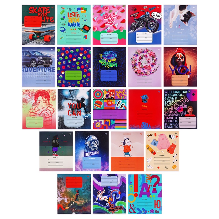 Тетрадь 80 листов в клетку на гребене Article publication, обложка мелованный картон, двойная обложка, матовая ламинация, МИКС