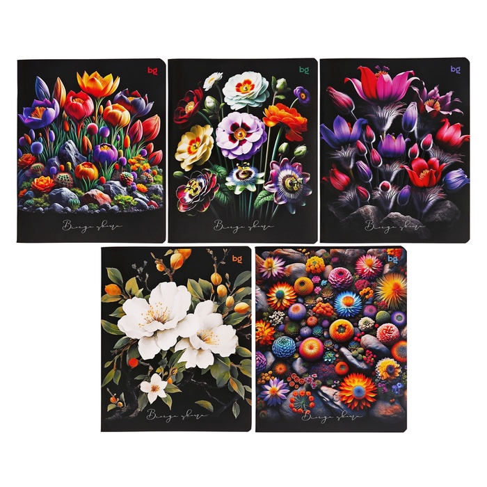 Тетрадь 40 листов, в линейку, на скобе "Цветы", обложка мелованный картон, МИКС