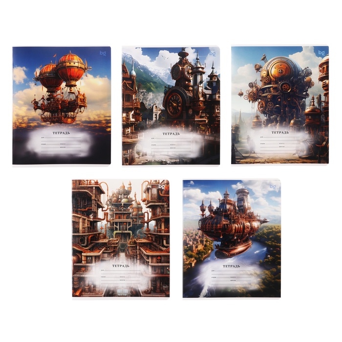 Тетрадь 12 листов в линейку "Стимпанк", обложка мелованный картон, ВД-лак, блок 65г/м2, МИКС