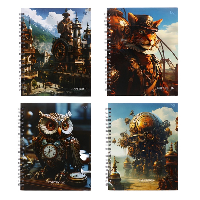 Тетрадь 80 листов в клетку на гребне BG "Стимпанк", обложка мелованный картон, глянцевая ламинация, блок 60г/м2