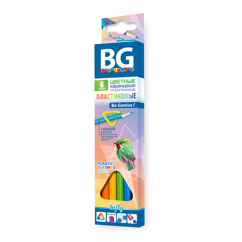 Карандаши цветные BG "Infly", 06цв., трехгран., пластиковые, 2,7мм, европодвес