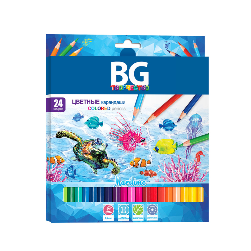 Карандаши цветные BG "Maritime", 24цв., шестигранные, 2,8мм, европодвес