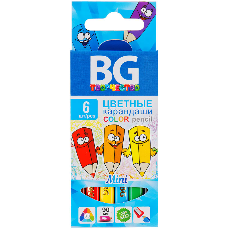 Карандаши цветные BG "Mini", 06цв., трехгран., 3,0мм, европодвес