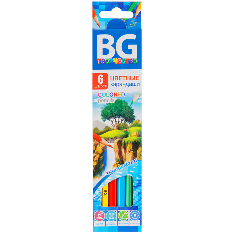 Карандаши цветные BG "Wonderland", 06цв, шестигранные, 3,0мм, европодвес